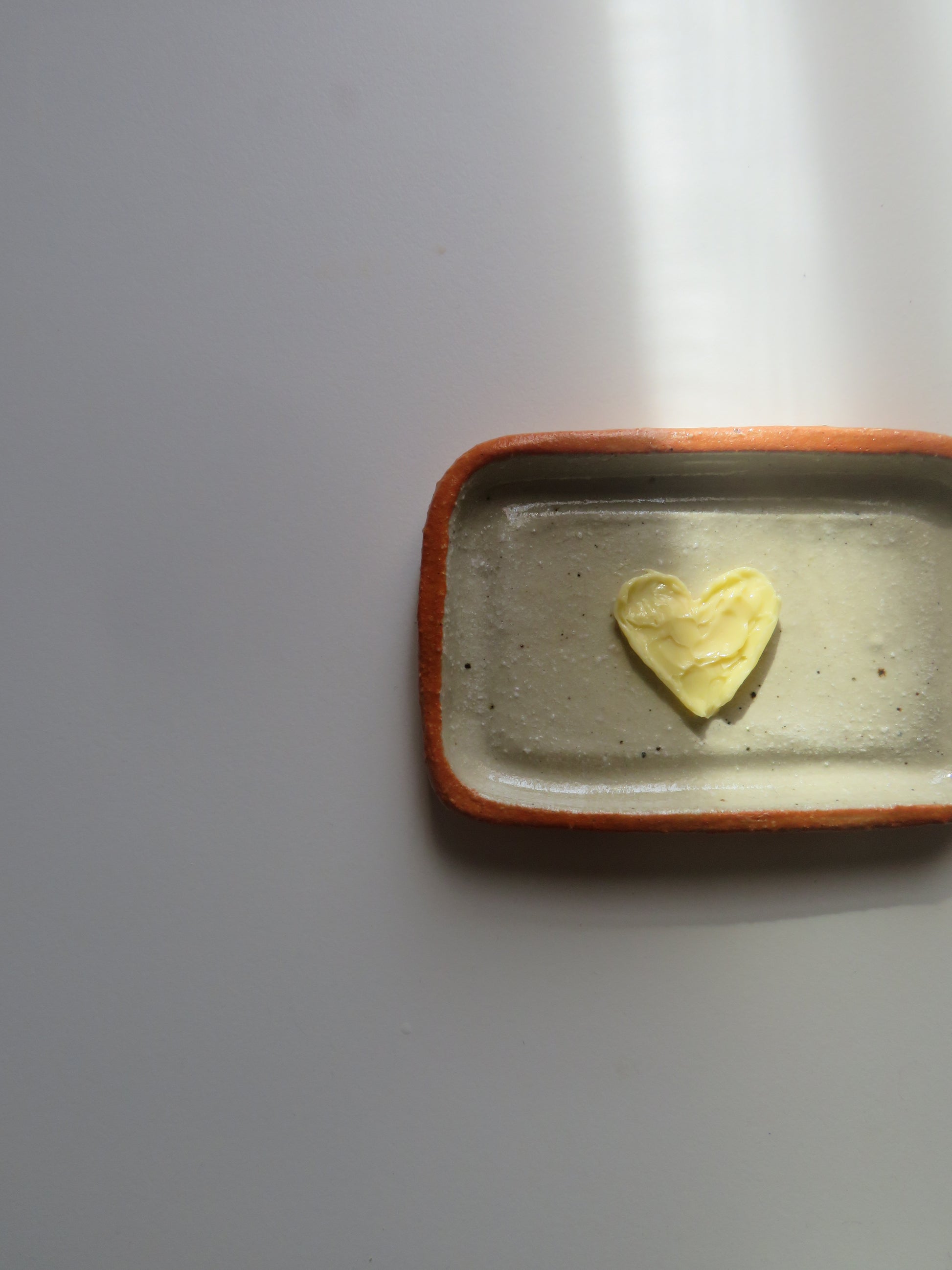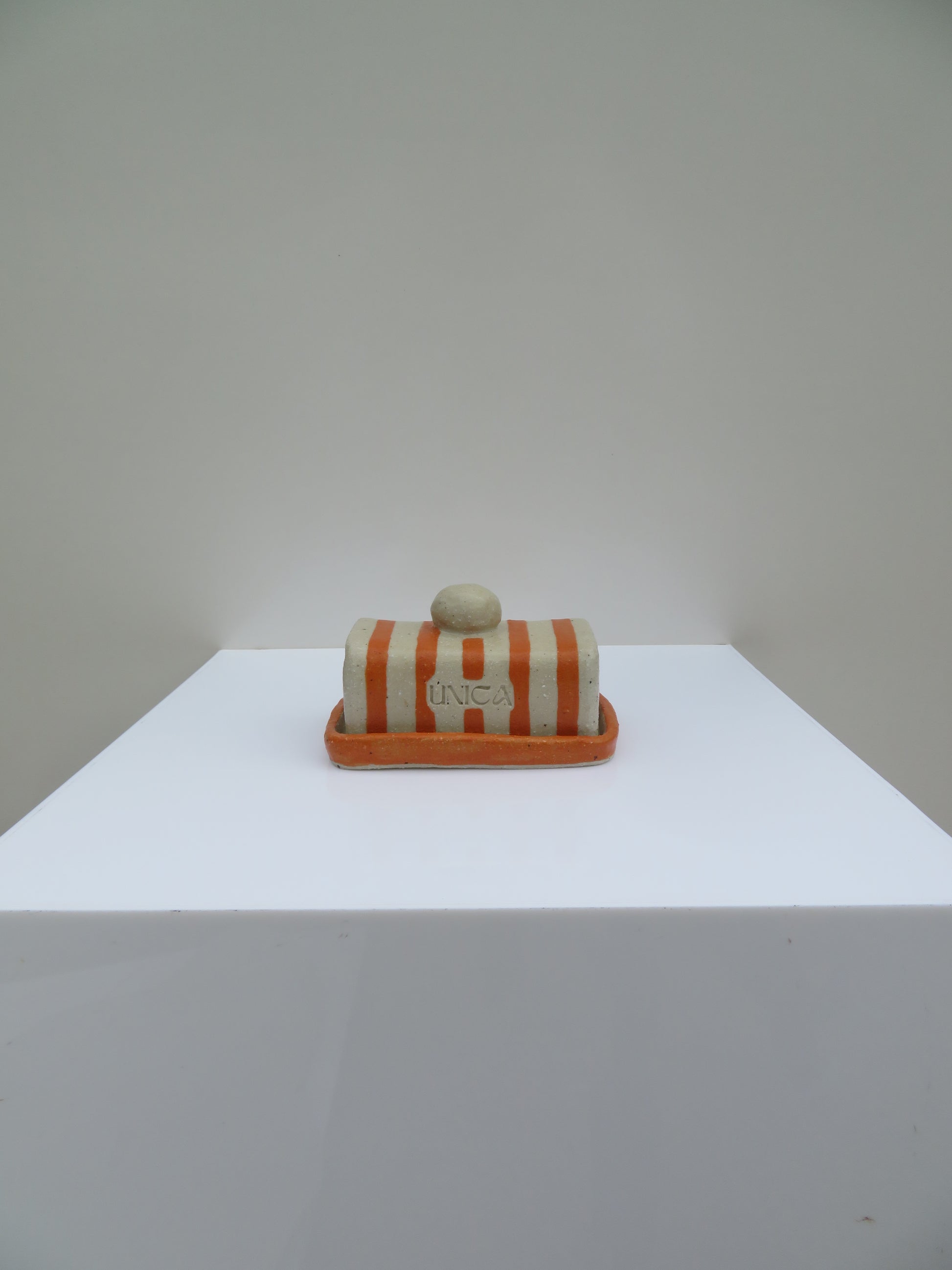 The "Butter Dish" adds a sweet, delicate touch to your daily butter rituals. Combining practicality with durability, this handcrafted piece is made from stoneware clay and finished with a Sweet Orange underglaze. It’s topped with a button-like handle—a detail shared with our Unica Studios mugs, and a cherished studio signature.